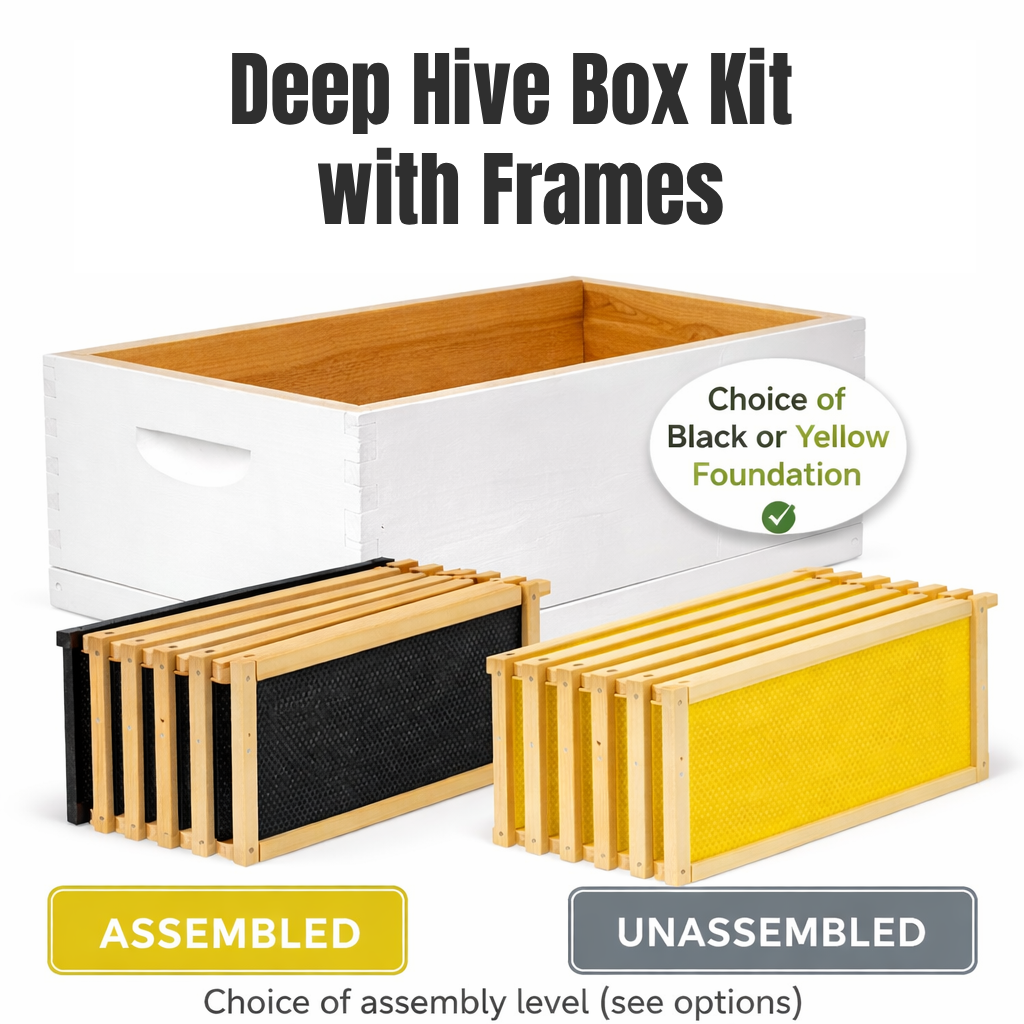 This Deep Hive Box Kit with Frames provides a complete, ready-to-configure solution for building or expanding a Langstroth hive. The kit includes one deep hive box and ten frames, allowing you to choose the assembly level and foundation style that best fits your beekeeping needs.